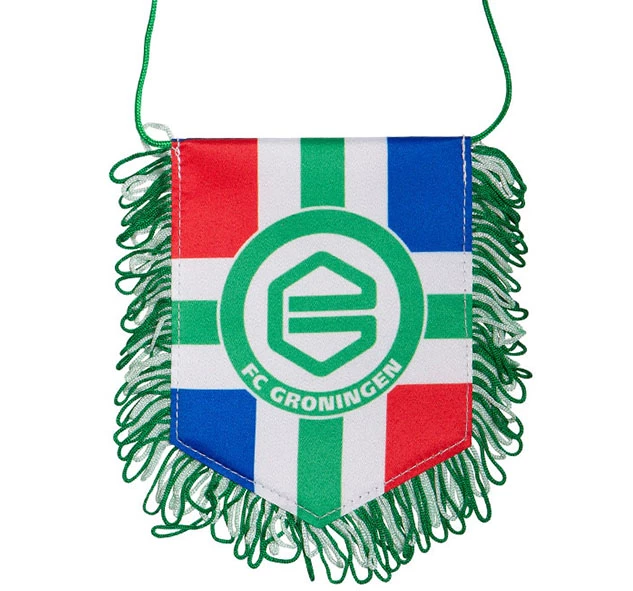 Banier provincievlag FC Groningen Hang deze mooie banier met FC Groningen logo en provincievlag gemakkelijk op in bijvoorbeeld je auto of in huis en laat zien dat jij FC Groningen een warm hart toedraagt.