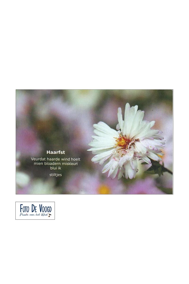 Fotokaart Haarfst. Een prachtige fotokaart met Gronings gedichtje van Gerda de Voogd. Het gedichtje bestaat uit elf woorden en heet dan ook een “Elfje”, dat overigens een officiële dichtvorm is.