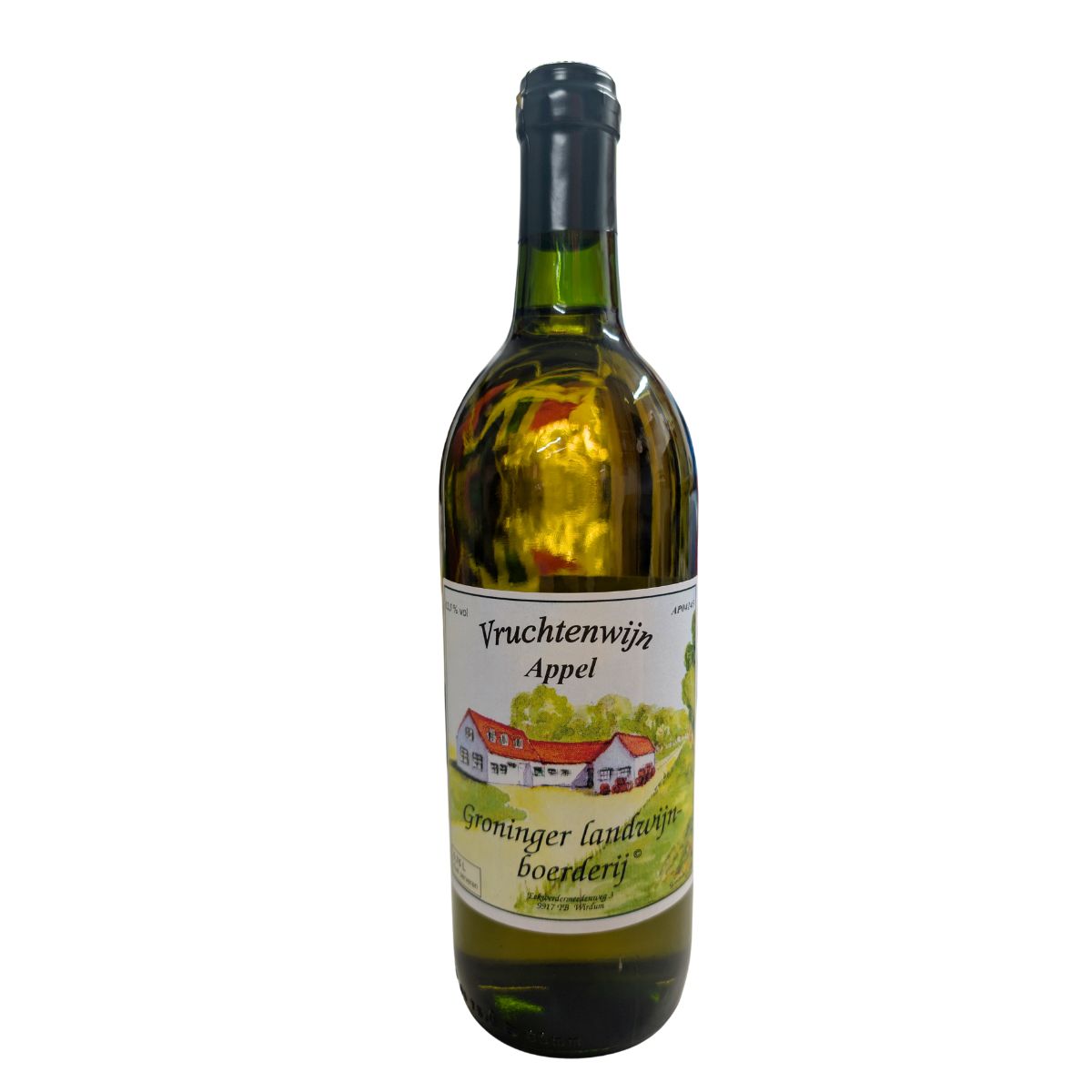 Heerlijke appel vruchtenwijn van de Groninger Landwijnboerderij. Fles 0,75 ltr. 12,5 % vol.