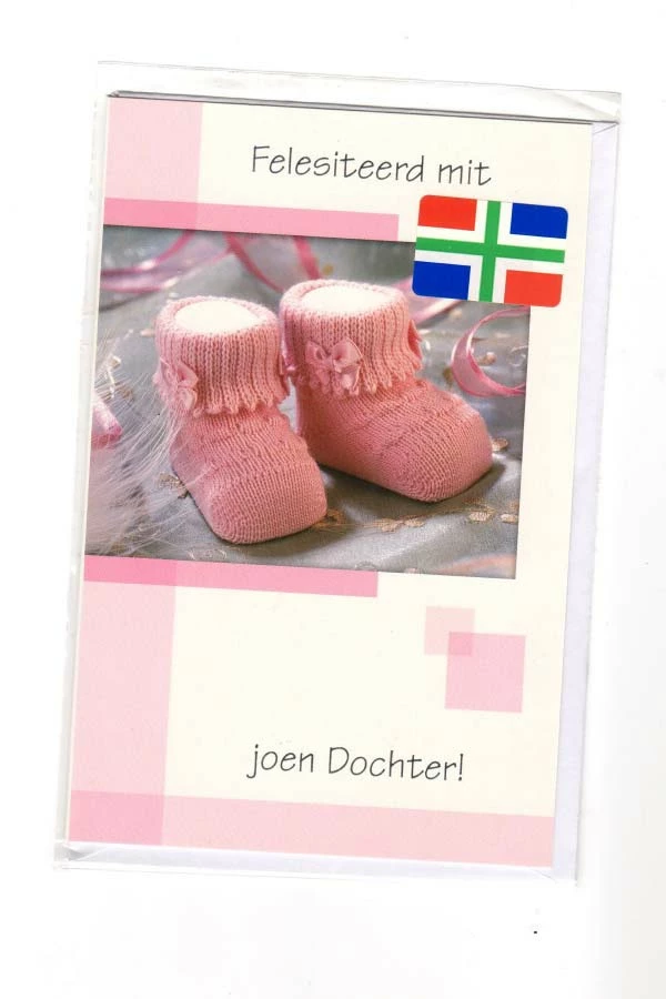 Een luxe, dubbele wenskaart met envelop, met Groninger tekst.